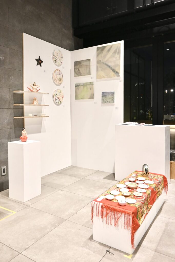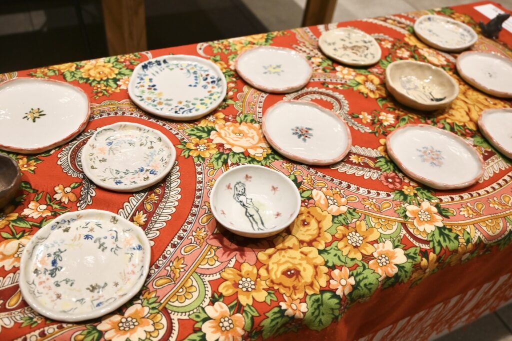 本イベントでは、DDDARTより田村美琴、架菜梨案の絵画、ZINE、陶器を展示・販売いたします。